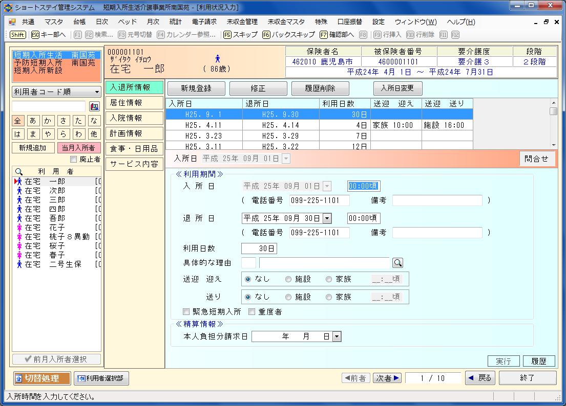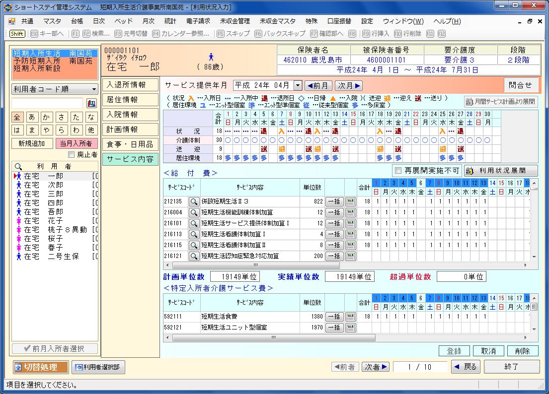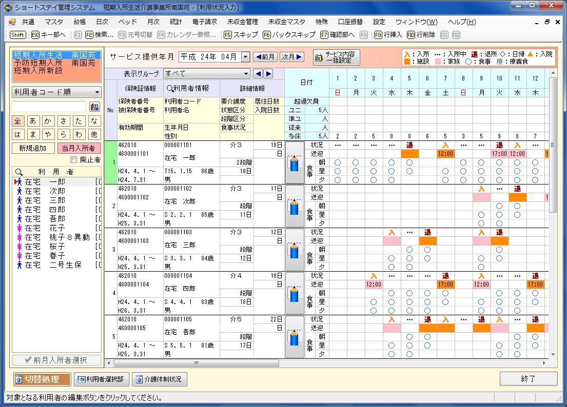 入所者の状況を一目で把握、状況入力画面から請求に必要な情報を入力