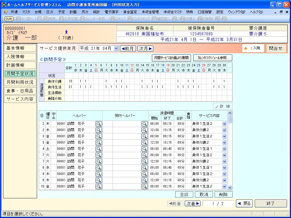 ケアマネジメントシステムで作成された月間サービス計画表の利用予定データを取り込むことができます。