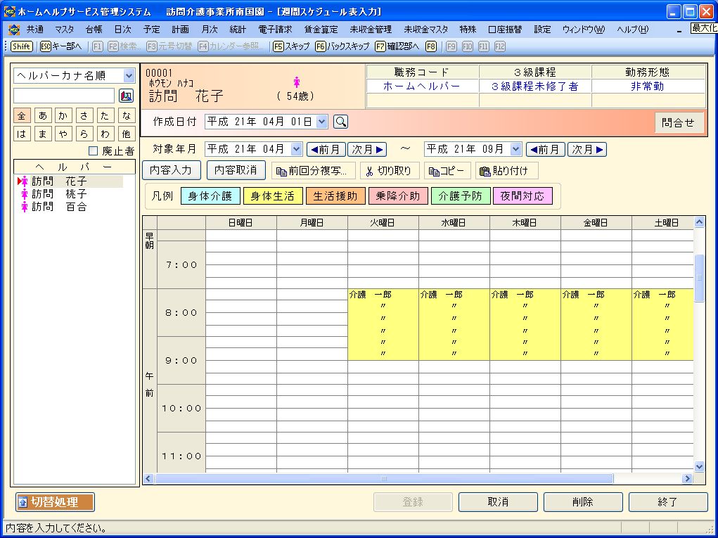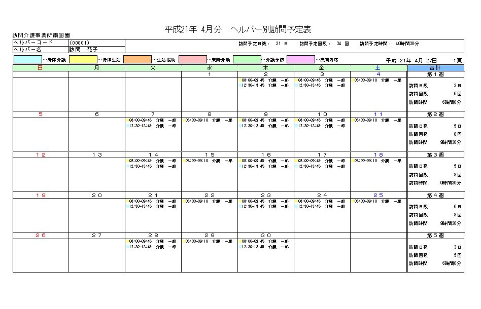 ヘルパーごとに「週間スケジュール表」作成機能を提供。作成された週間スケジュールから月間訪問予定を作成できます。