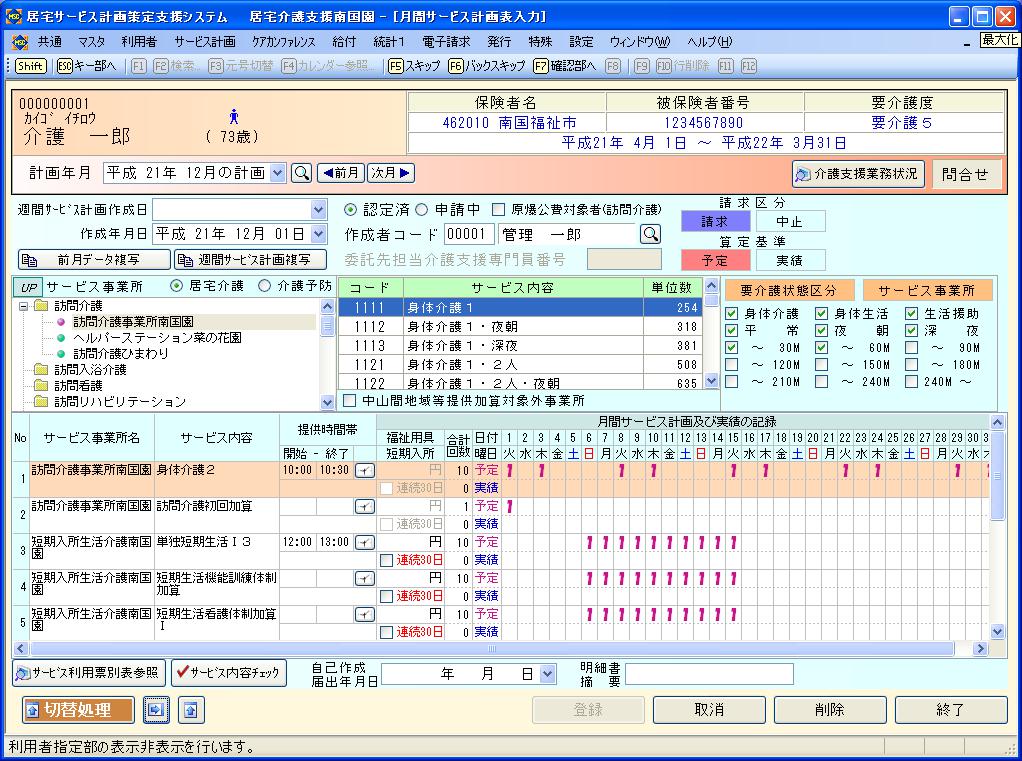 相談受付表、問題領域検討表、居宅サービス計画書、週間サービス計画書などの様式イメージを入力画面に採用、誰もが簡単な操作で入力を行えます。