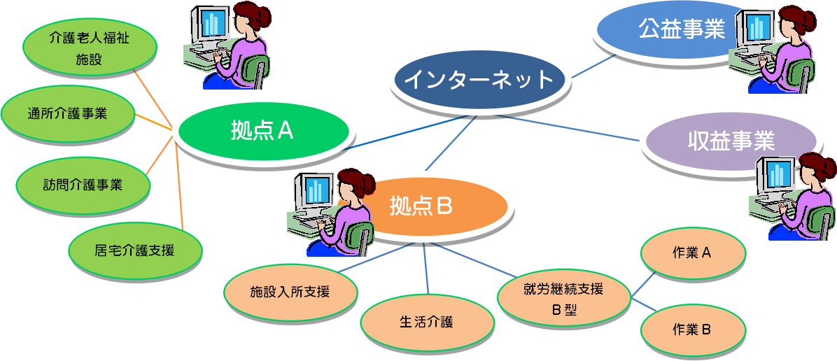 法人様全体のネットワーク化、データの一元管理に対応