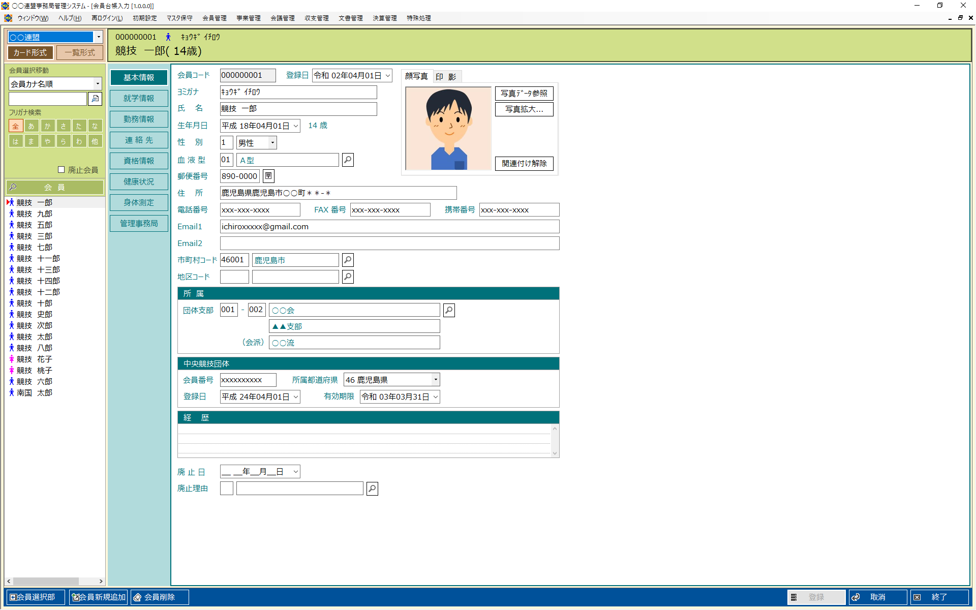 - 会費情報・・・各種会員の年会費設定を行います。また、年度単位での登録が可能となっていますので総会議決による年会費改定にも対応することができます。