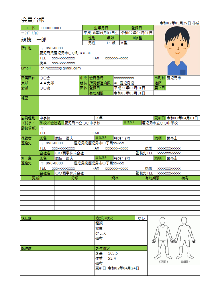 - 健康状況・・・現在症、既往症、障がい状況、障がい部位の情報を登録します。
