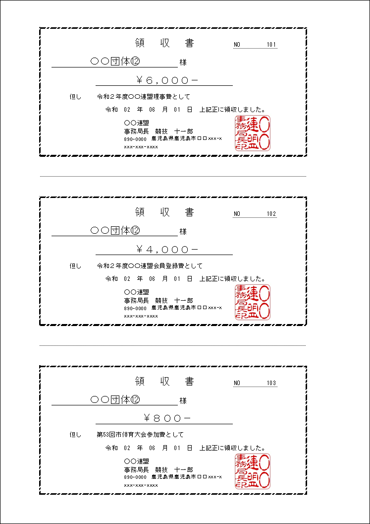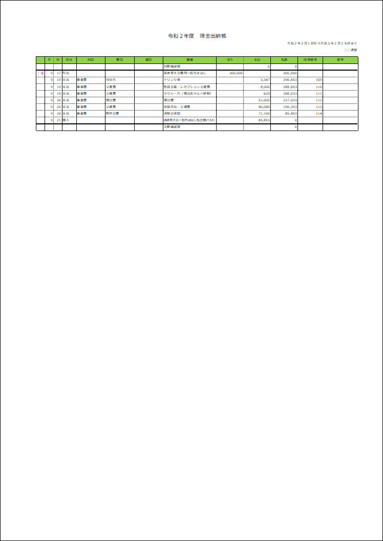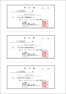 - 預金出納帳、現金出納帳にて領収書指定された伝票について領収書を出力することができます。
