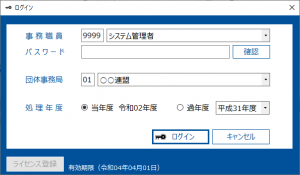 - 事務職員情報の登録を行います。(システムメニュー起動ログイン時のアカウント及びパスワード情報)