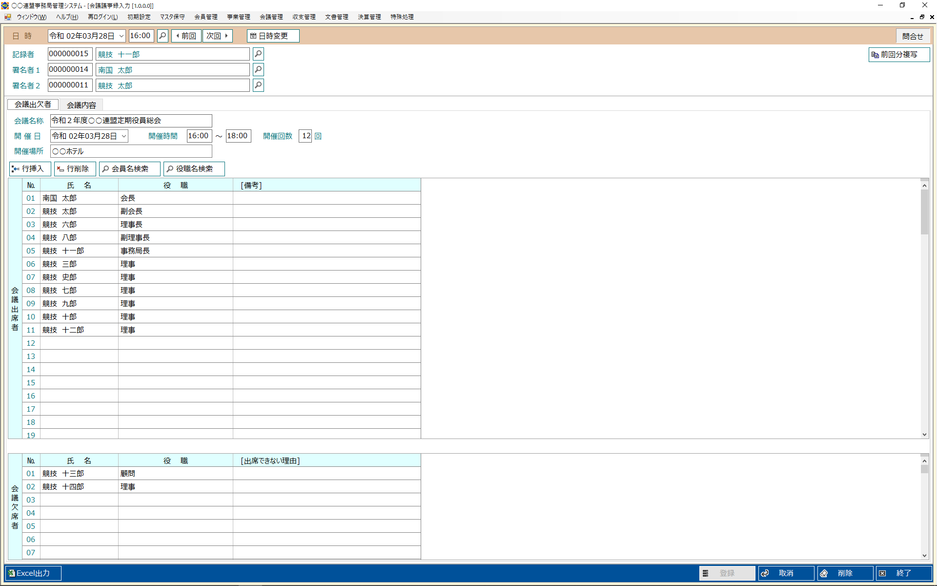 - 会議議事録の登録/出力(EXCEL)を行います。